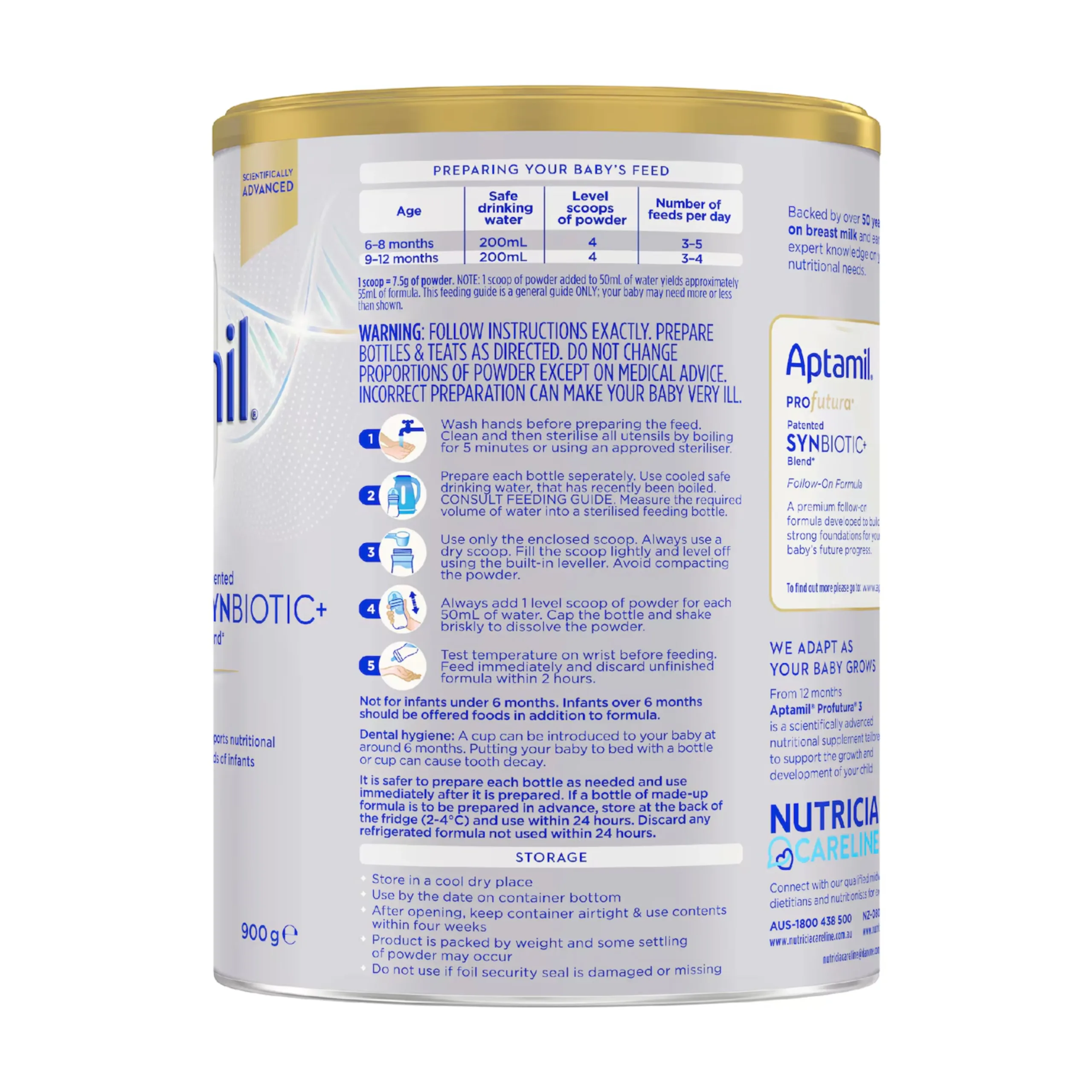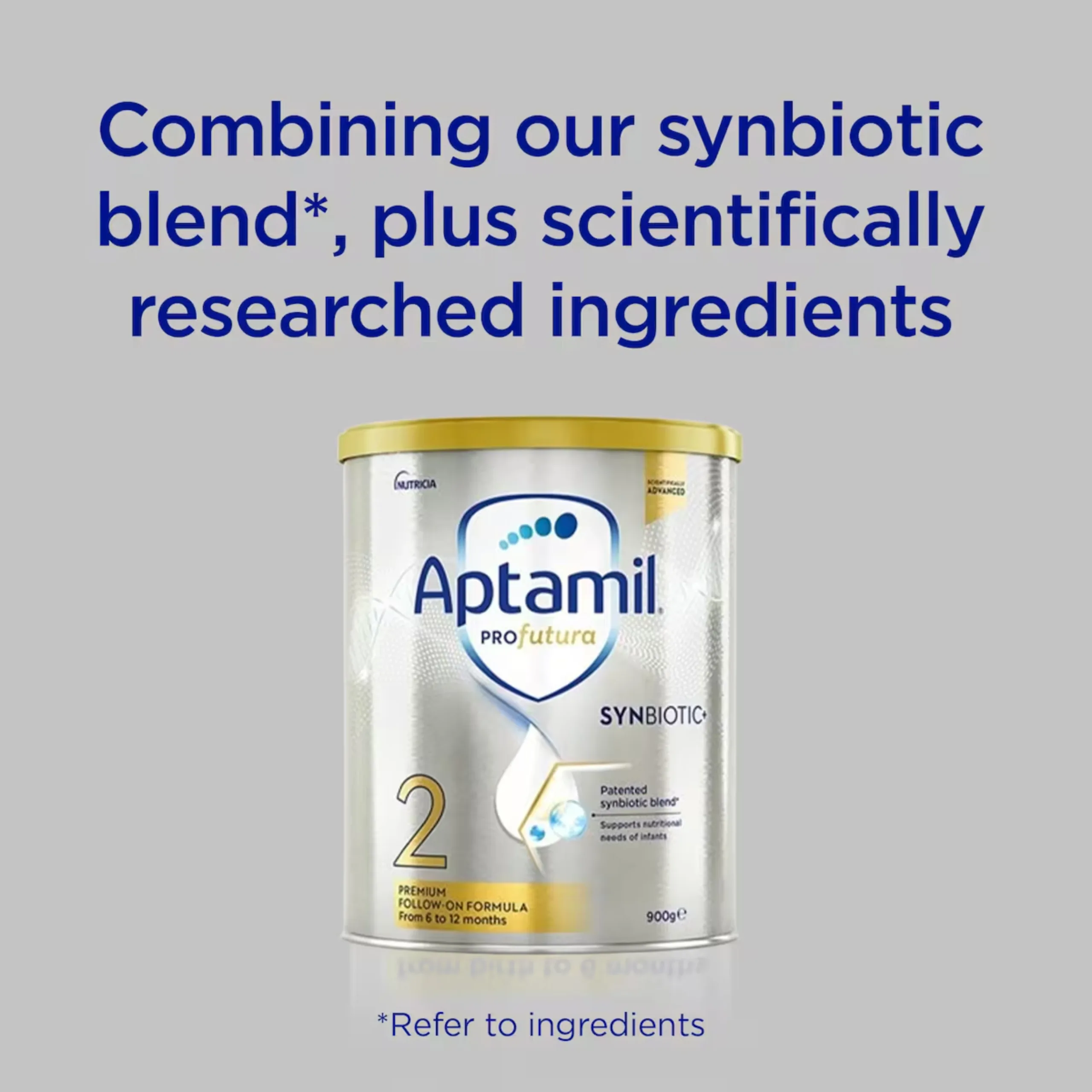 Combining our patented synbiotic blend, plus scientifically researched ingredients, Aptamil Profutura 2 is specially formulated to nutritionally support the needs of your growing baby.