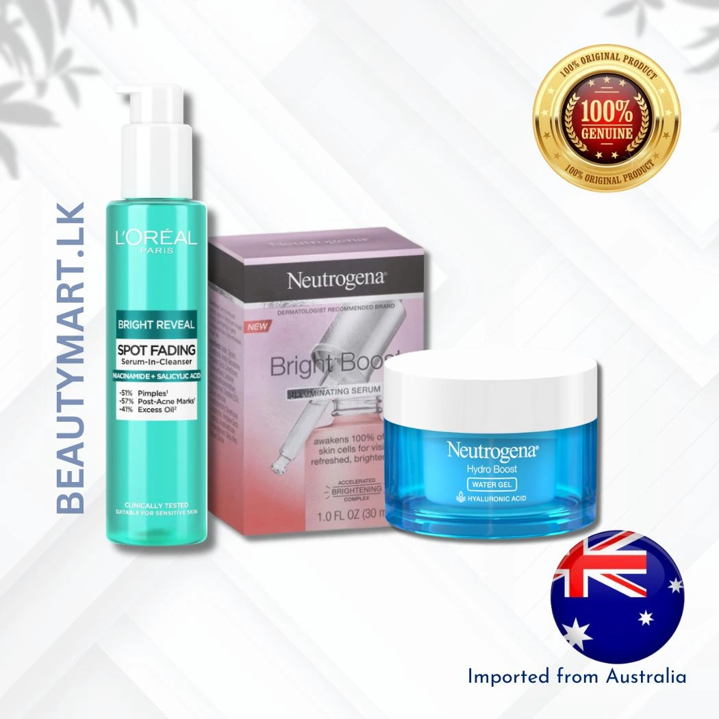 • Neutrogena Bright Boost Illuminating Serum (30ml) – Awakens 100% of dull skin cells for a more radiant, even-toned complexion with accelerated brightening ingredients.